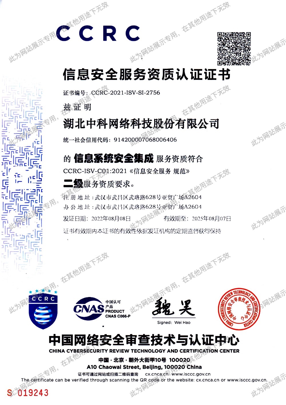 湖北中科網絡科技股份有限公司成立于1998年5月,注冊地為武漢市武昌區,總部位于中國光谷。是智能化、信息化行業的領軍企業,國家認定的高新技術企業、湖北省專精特新企業。